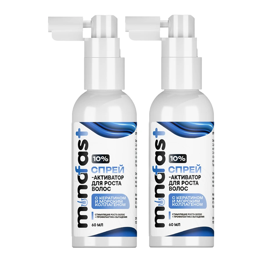 Спрей-активатор для роста волос с кератином и морским коллагеном Minofast 10%.
