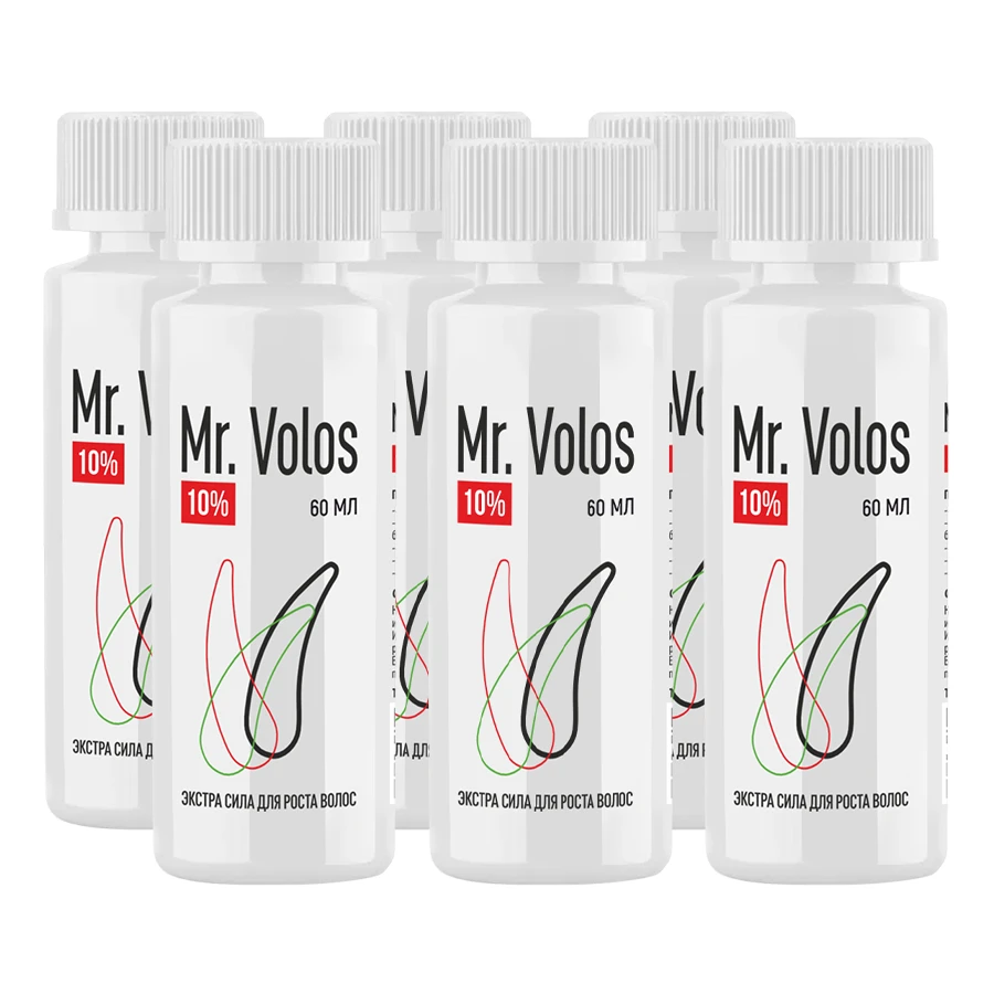 Что в комплекте: 6 флаконов лосьона для роста волос Mr. Volos 10%, 60 мл. 6 оригинальных пипеток для нанесения объемом 1 мл.