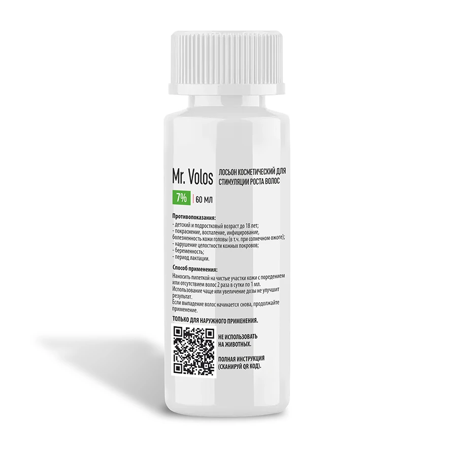 Что в комплекте: 2 флакона лосьона для роста волос Mr. Volos 7%, 60 мл. 2 оригинальные пипетки для нанесения объемом 1 мл.