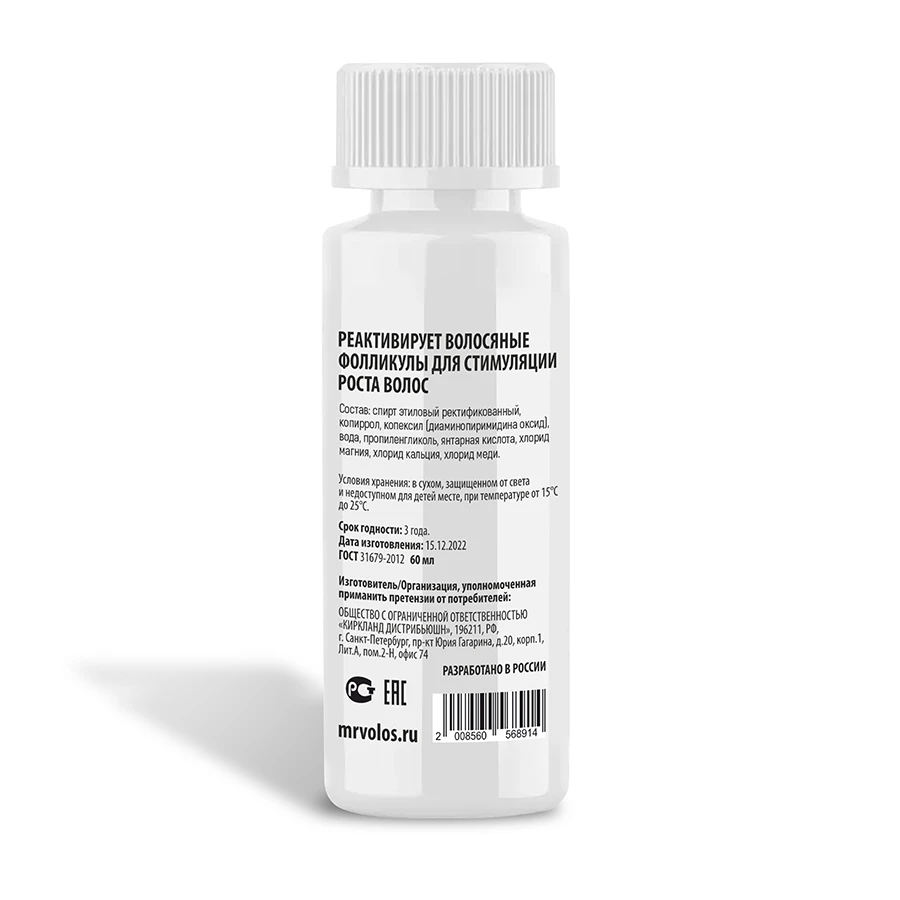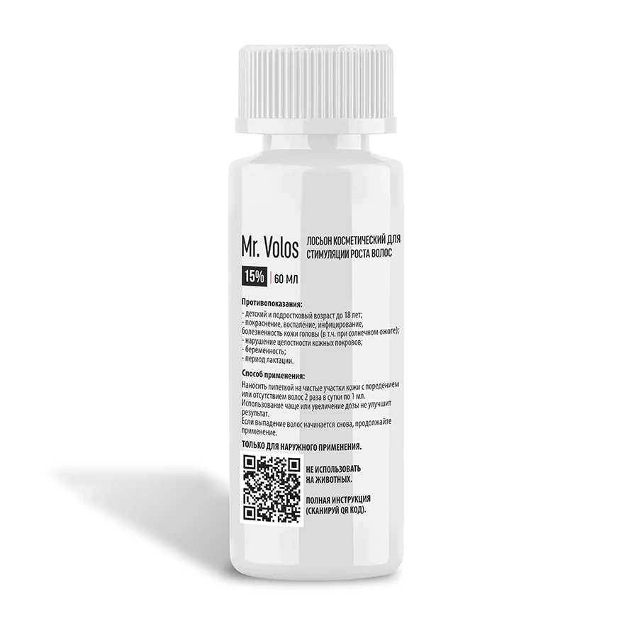 Что в комплекте: 2 флакона лосьона для роста волос Mr. Volos 15%, 60 мл. 2 оригинальные пипетки для нанесения объемом 1 мл.