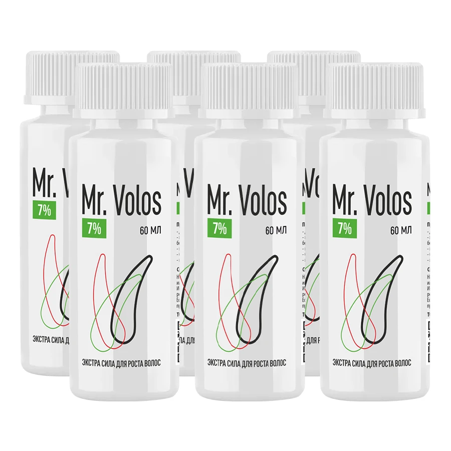 Что в комплекте: 6 флаконов лосьона для роста волос Mr. Volos 7%, 60 мл. 6 оригинальных пипеток для нанесения объемом 1 мл.