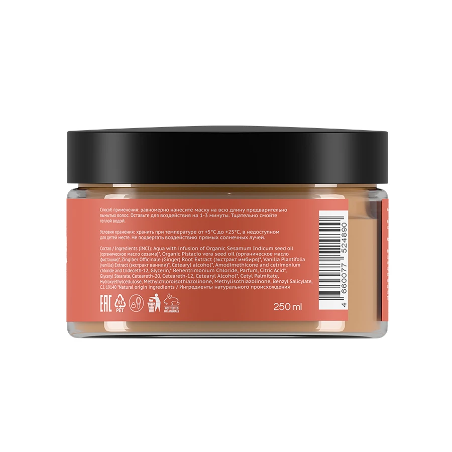 Эта маска — настоящий источник питания и восстановления для ваших волос. Формула с органическими маслами фисташки и сезама обеспечивает интенсивное увлажнение и укрепление структуры волос, делая их более гладкими и послушными.