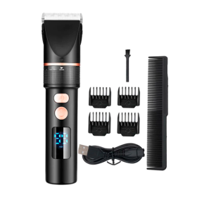 Электрическая бритва с цифровым светодиодный дисплеем, который отображает уровень заряда аккумулятора. 4 насадки: 3мм, 6мм, 9мм, 12мм. Регулировка лезвия: 0.8мм, 1.1мм, 1.4мм, 1.7мм, 2.0мм. Керамические лезвия и высокая точность бритья. Низкий уровень шума. Быстрая зарядка, после полной зарядки может использоваться непрерывно в течение 4 часов.