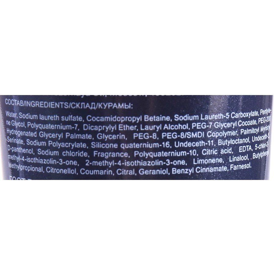 Состав: Aqua, Sodium Laureth Sulfate, Cocamidopropyl Betaine, Sodium Laureth-5 Carboxylate, Peg-7 Glyceryl Cocoate, Pentylene Glycol, Sodium chloride, Methyl Lactate, Polyquaternium-10, Panthenol, Citric Acid, Parfum, Limonene, Methylchloroisothiazolinone, Methylisothiazolinone, Magnesium nitrate, Magnesium chloride.