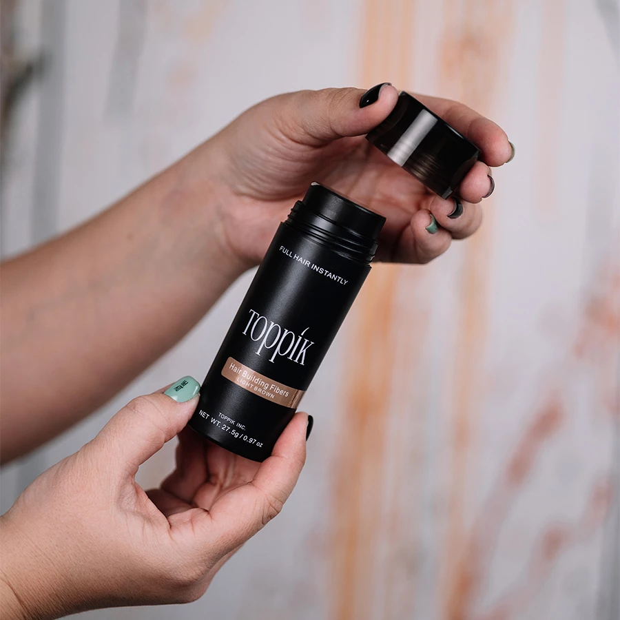 Частицы Топпика быстро притягиваются к волосам благодаря статическому электричеству, закрывая залысины и редкие корни. Оно удерживает загуститель на голове столько, сколько понадобится.