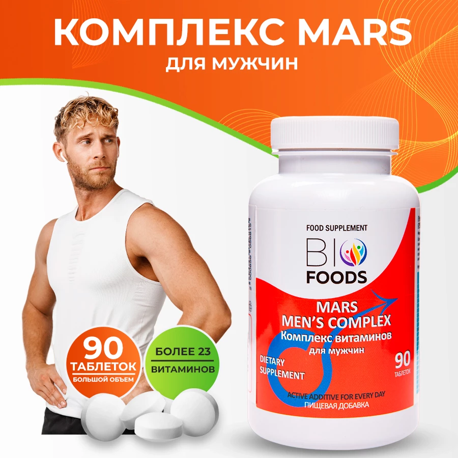 Содержит все самые необходимые витамины для организма мужчины. Комплекс Mars отлично подойдет как для профилактики поддержки организма, так и для тех, кто ведет активный образ жизни.